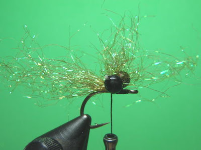 Step 2: Lash down a sparse clump of Olive Ice Dub just behind the Mono Eyes.